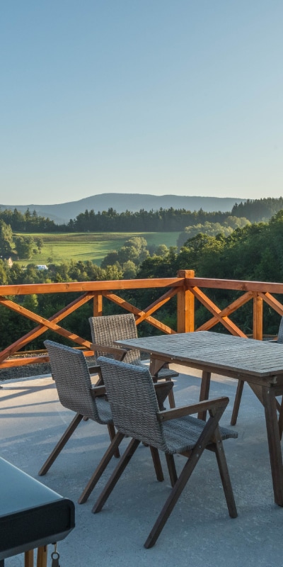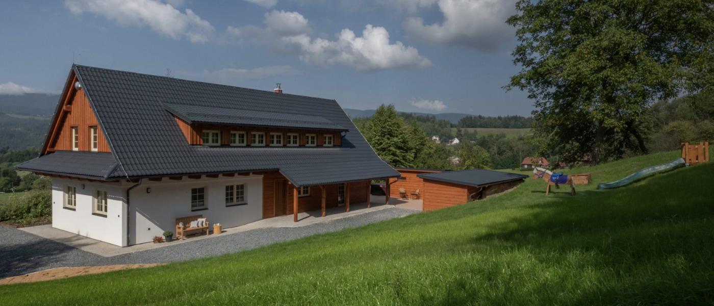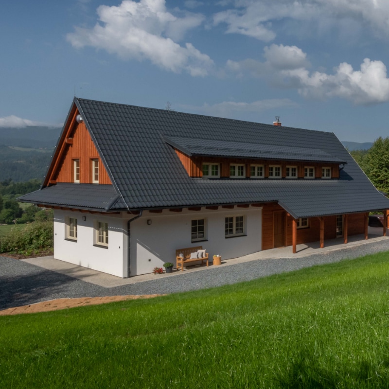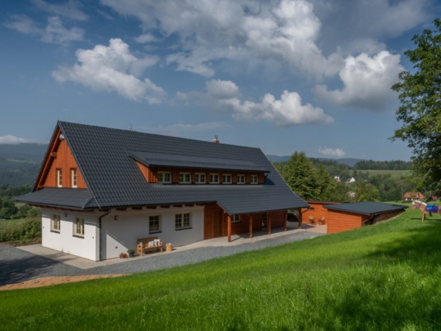 Na první pohled tradiční valašská chalupa, přesto uvnitř moderní a vybavená, s otevřenou terasou a nádherným...