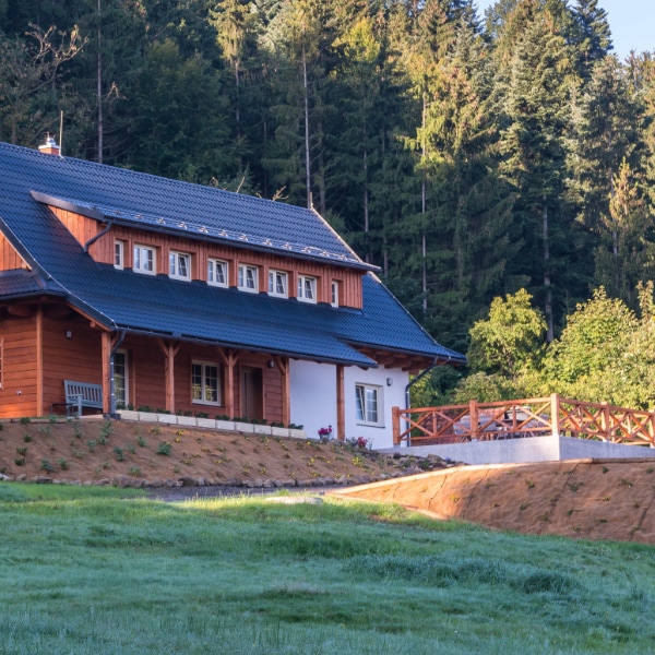 Chalupa s krytým venkovním sezením, sluneční terasou a zázemím směrem k lesu poskytne klid a soukromí a zároveň vše...